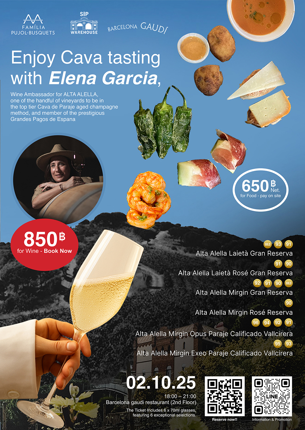 Enjoy Cava tasting with Elena Garcia, Wine Ambassador for ALTA ALELLA, one of the handful of vineyards to be in the top tier Cava de Paraje aged champagne method, and member of the prestigious Grandes Pagos de Espana